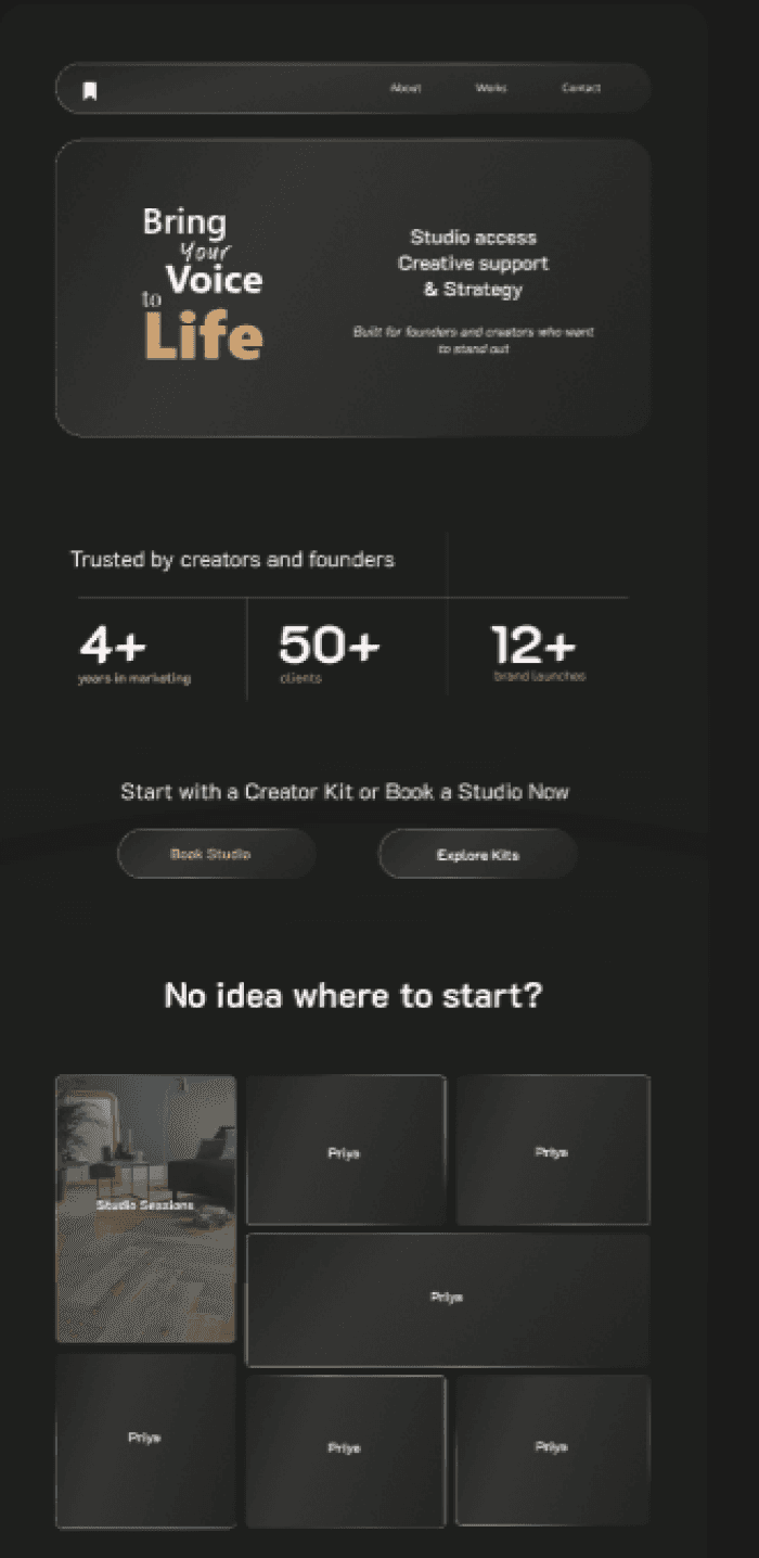 Images lead the conversation first, allowing new visitors to feel the service before reading the price.