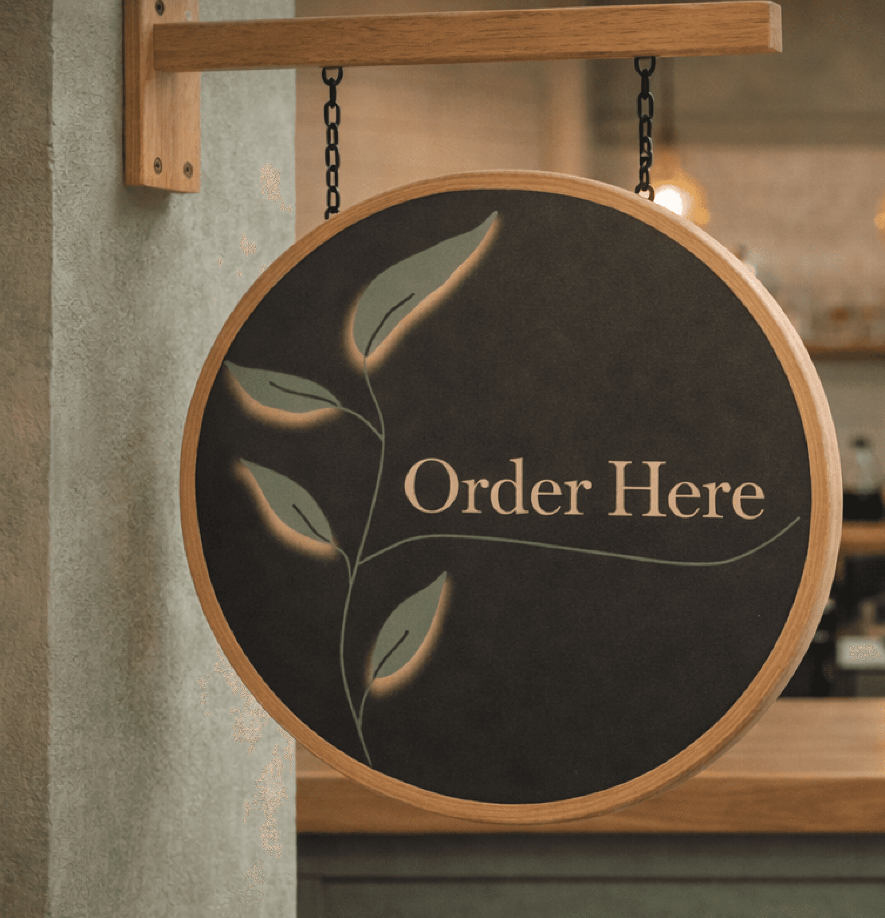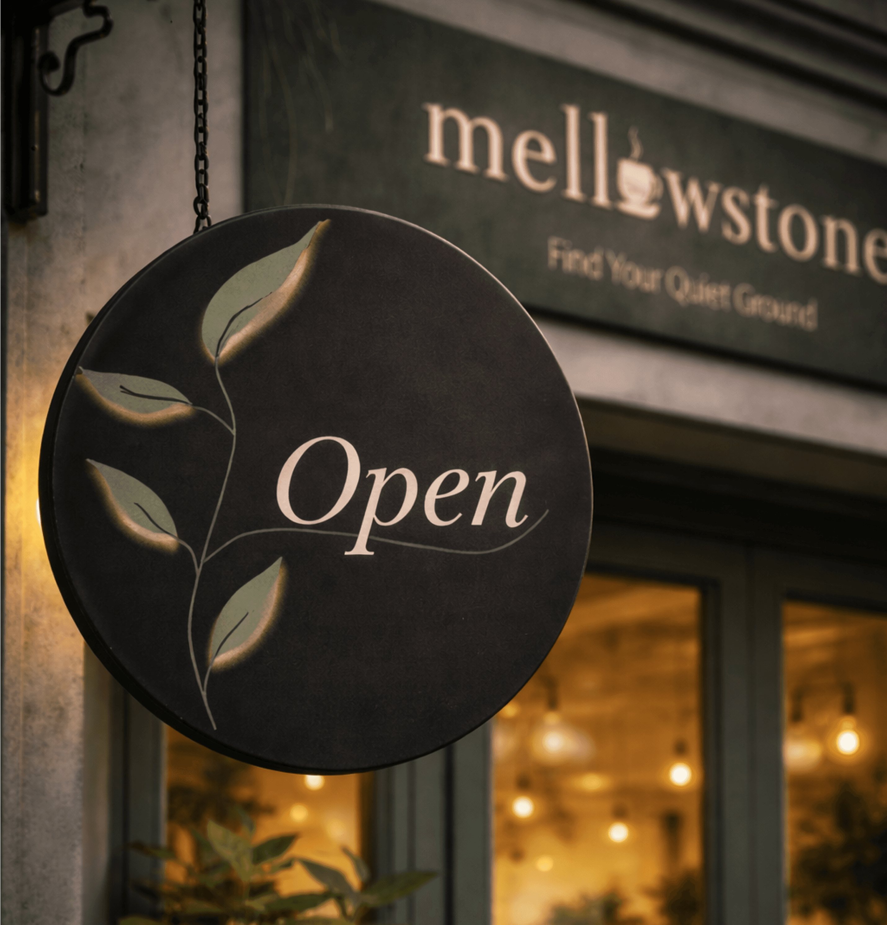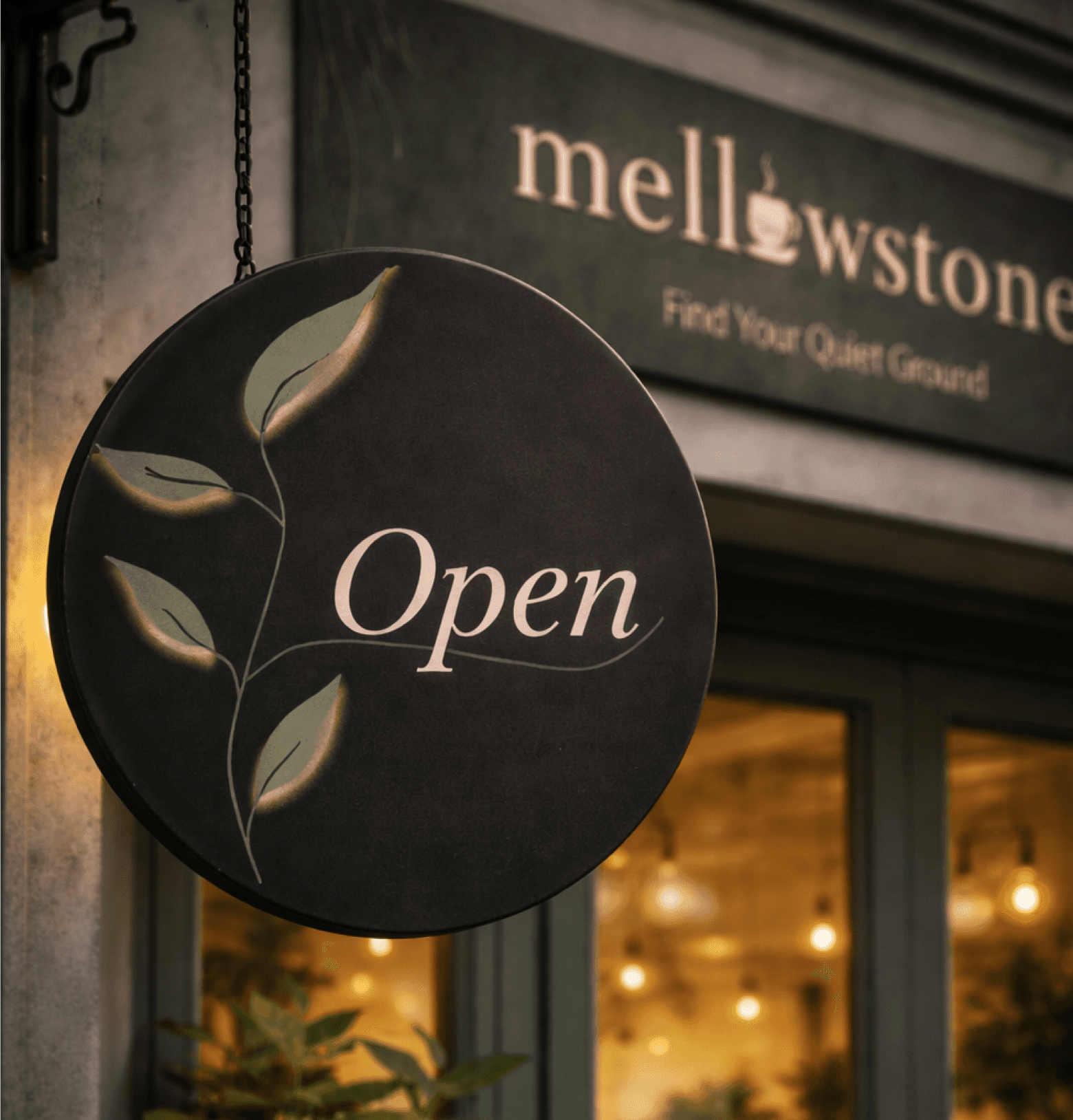 Signage designed to feel calm, grounded, and inviting at first glance.