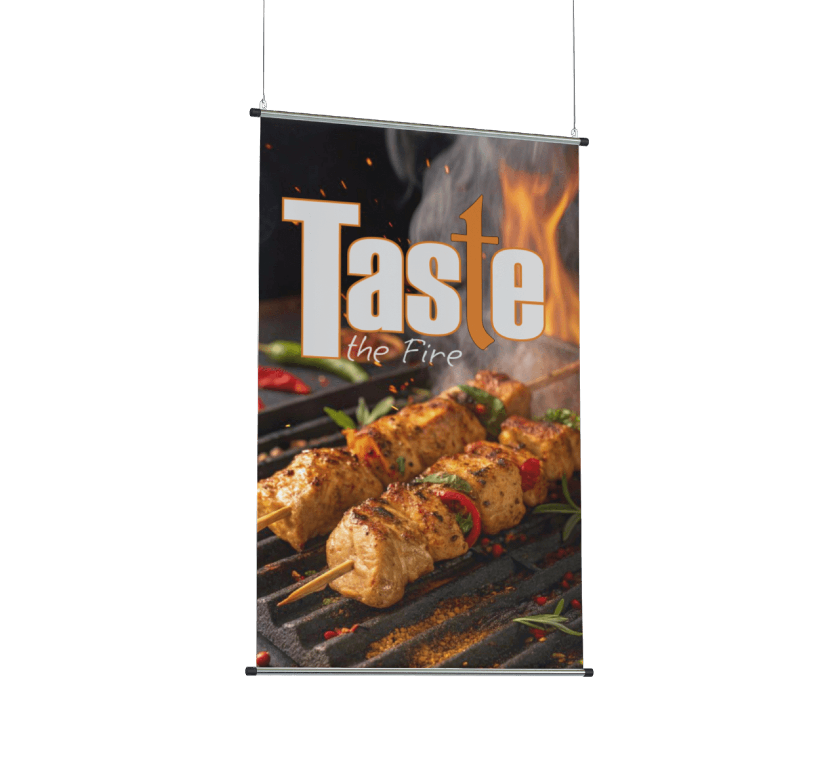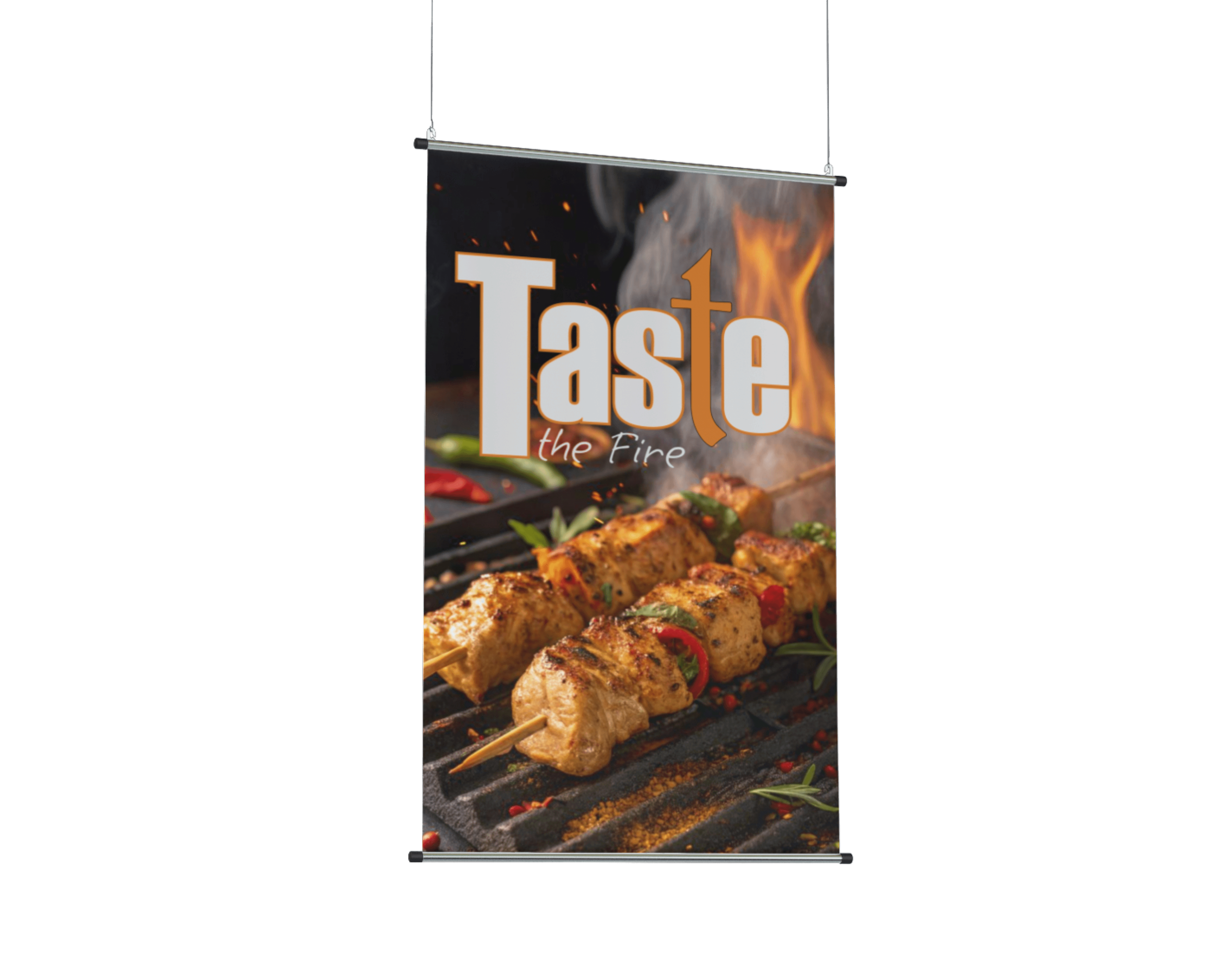 Bold typography, high contrast, and a close-up food visual were used to ensure the message remains powerful even from a distance.