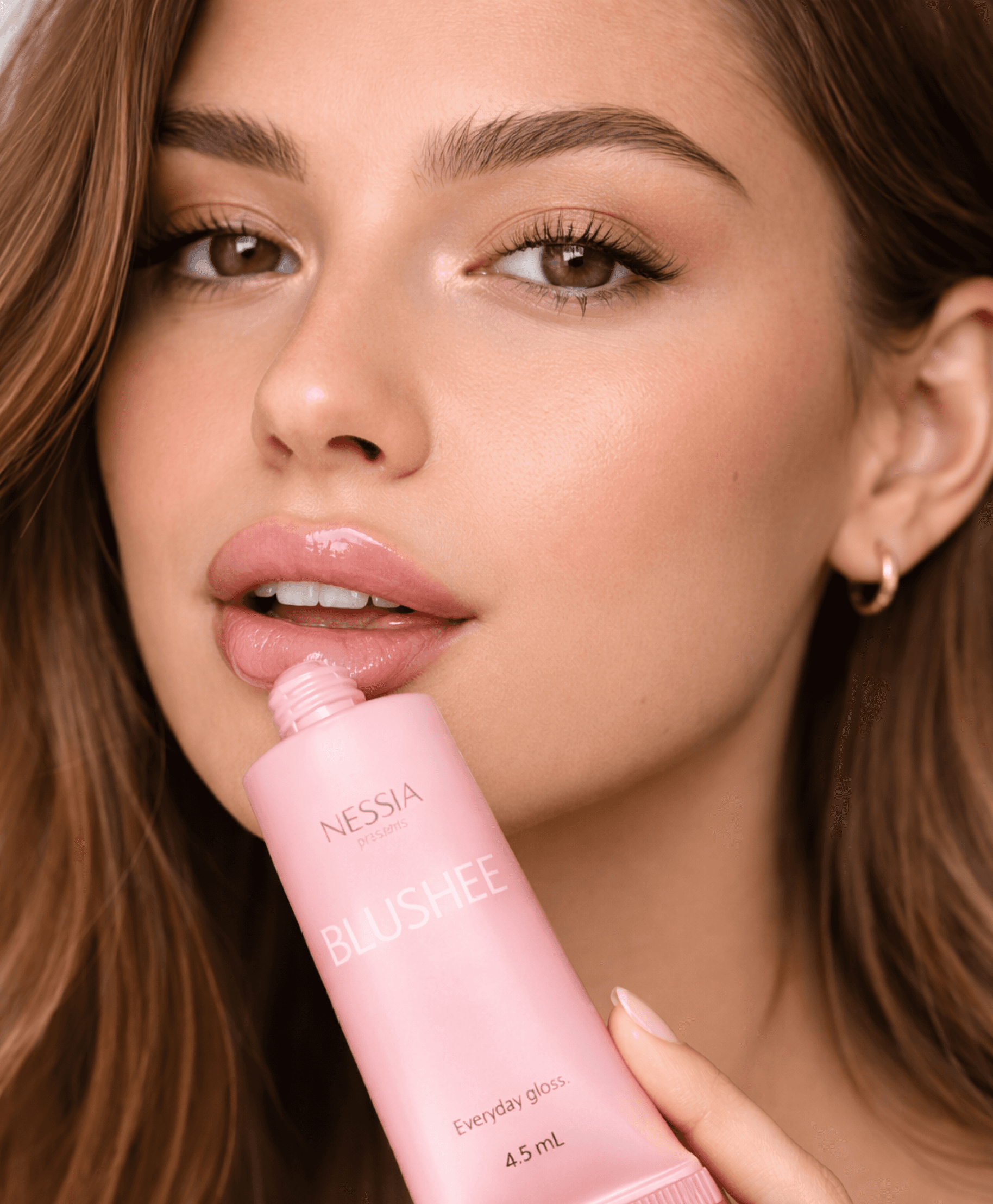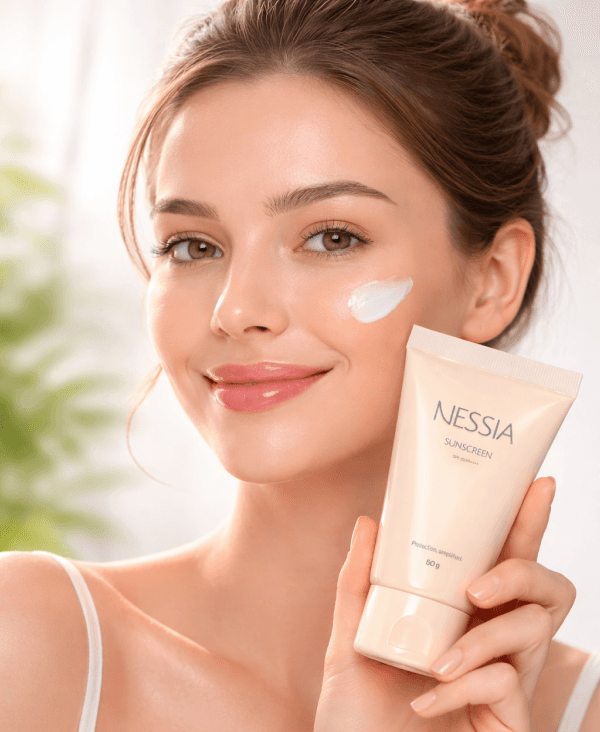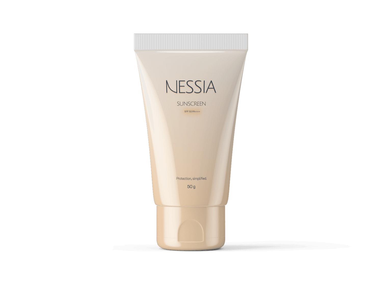 Muted beige -gold tones signal safety, confidence, and daily skin protection.