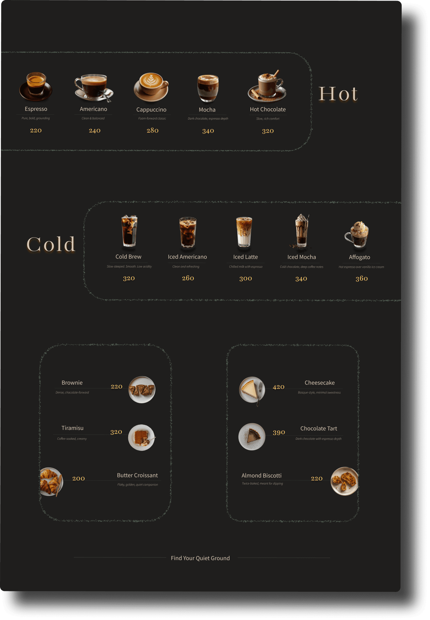 A quiet, consistent café brand that feels calm, focused, and trustworthy.